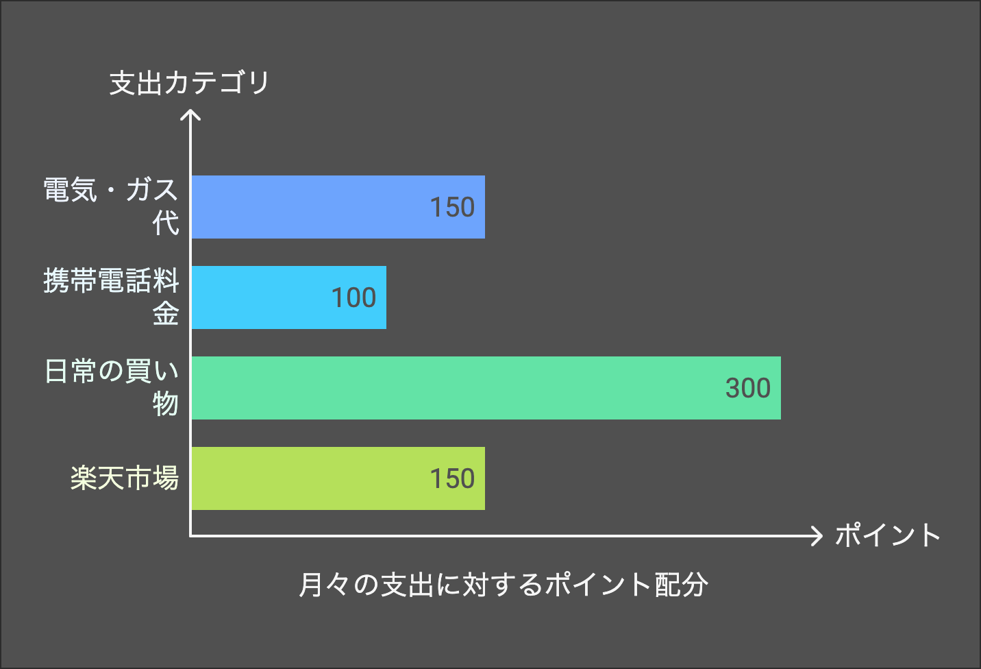 • 日常の買い物(スーパーやドラッグストア): 月30,000円使うと300ポイント